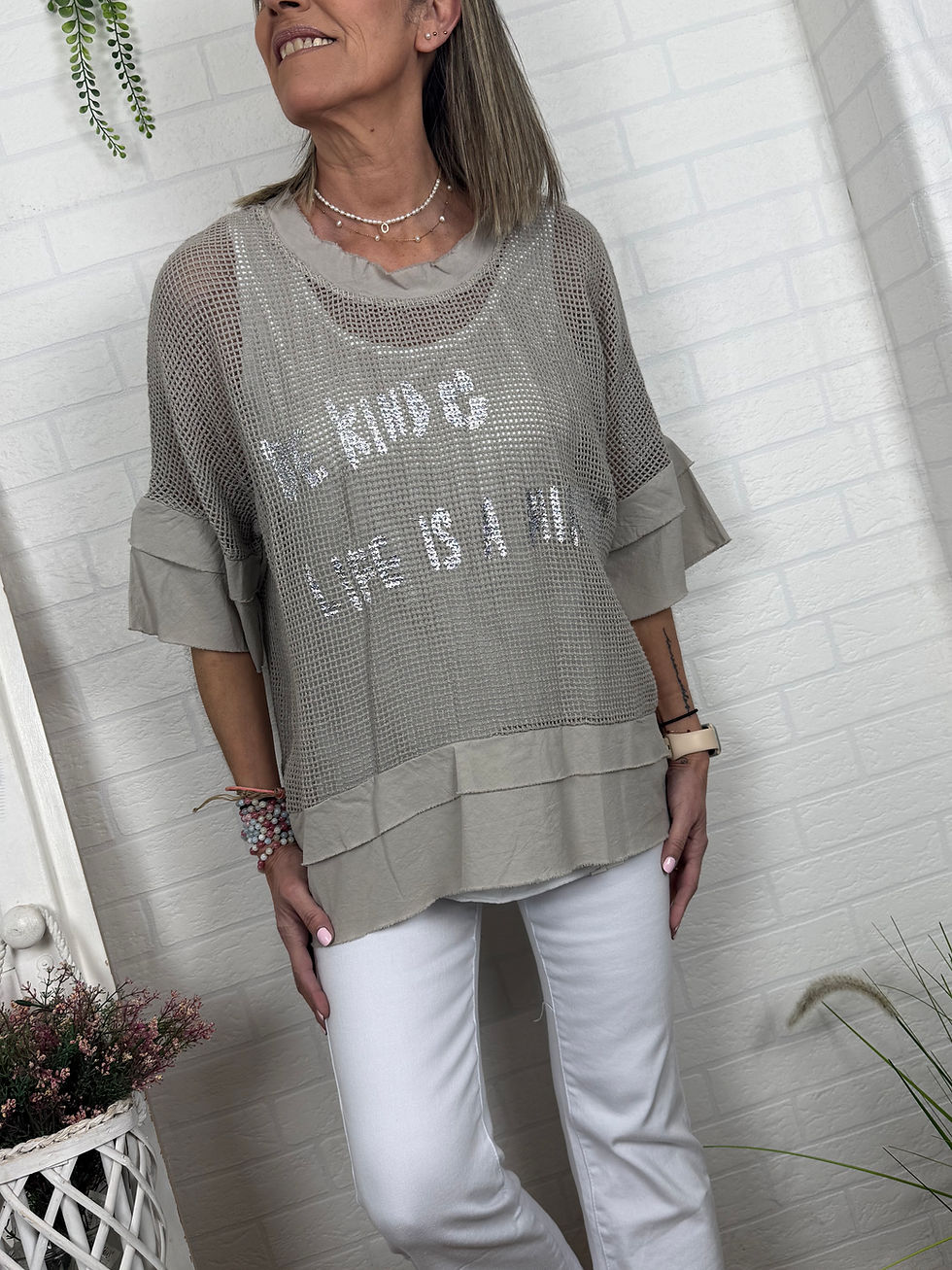 CAMISETA FLOR TAUPE